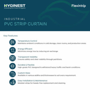 It is a hygienic and energy-saving barrier made from high-quality PVC strips to control temperature and prevent dust and insects.